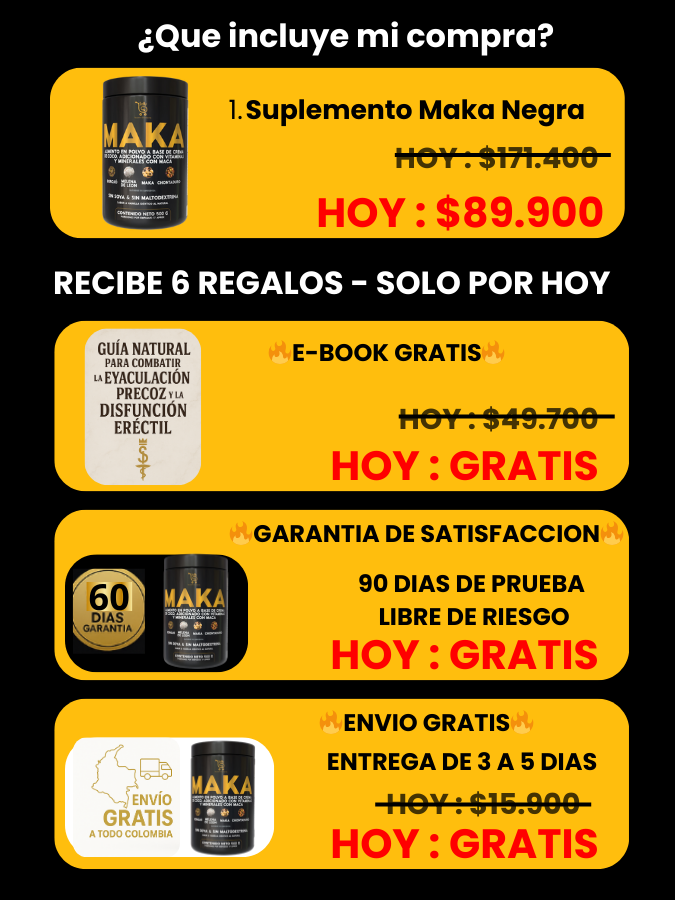 La maka negra está formulado con ingredientes naturales y es bien tolerado por la mayoría de los hombres. Aun así, si estás tomando medicamentos o tienes una condición médica previa, te recomendamos consultar con tu médico antes de iniciar el suplemento.