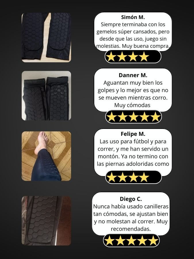 Nuestras canilleras tienen un diseño ajustable y elástico , lo que permite que se adapten perfectamente a cualquier tipo de pierna sin incomodar.