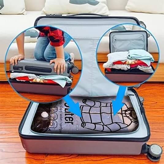 Puede reducir el espacio ocupado por tus prendas hasta en un 80%, permitiéndote organizar el clóset o ahorrar espacio en la maleta de viaje.